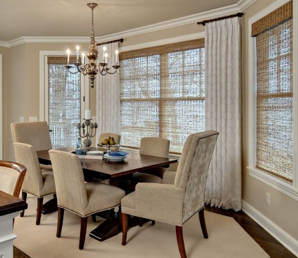 Nevertheless, there is a less expensive option for draperies -short drapery rod ideas. This solution perfectly fits for triple window treatment. It will save space in the room and will give an atmosphere of home comfort and warmth without frills.